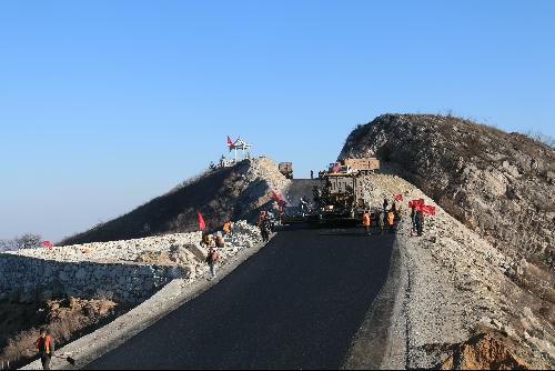 1220日晚1828分,随着圣福天路最后一段路面工程——海拔1290米的符山山顶处的沥青路面铺筑顺利合龙,天路全线贯通。